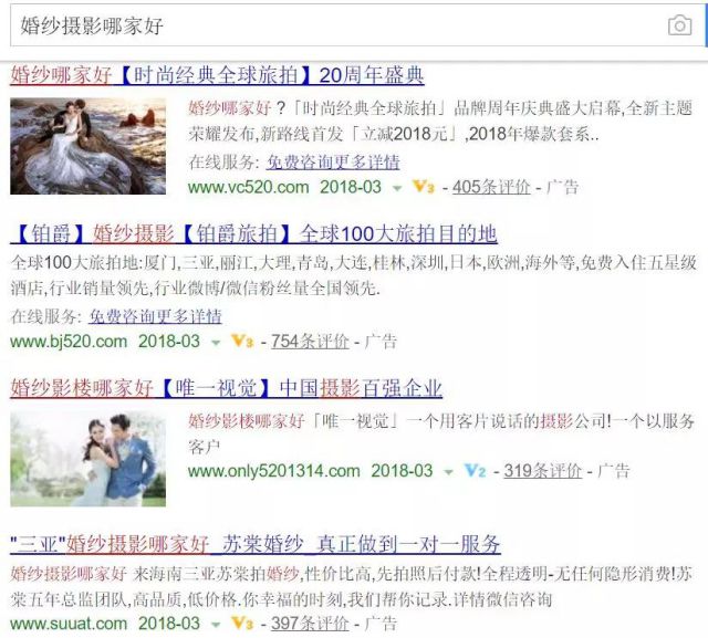 你们见过那种很牛很牛的竞价大神吗?没错,就是小编经常说的那种月入2万的。那你见过那种月入2万的大神玩广告竟然没转化的时候吗?小编就见过。因为老板让他转行去投信息流!然后转化哗哗地往下掉。为什么会出现这种情况?因为营销思维不同。单就目前而言,广告形式可分为两种:竞价和信息流。虽都为付费广告,但我们往往会发现那些玩竞价很溜的,转行去玩信息流,效果都会很差。用竞价思维去玩信息流,只会死得更快、更惨。 来,今天小编就从竞价和信息流的角度来讲一讲“营销思维”这件小事。小编将从以下三点,来进行对比来告诉你“什么是竞价思维”、“什么是信息流思维”,二者之间的区别是什么。 01、人群 竞价的推广形式为用户产生需求、主动搜索。所以,竞价的主要用户群体为“意抖音落地页向人群”。 而信息流的推广形式主要为用户被动吸收,广告形式多展现在用户所浏览的信息中。所以,竞价的主要用户群体为“潜在人群”。用户群体的不同,便注定了我们所使用的套路要有所区别。 02、创意 竞价的流程为:用户产生需求—将需求总结为关键词在百度上搜索—选取戳心创意—转化。由此可得出,竞价在创意撰写上多是基于用户搜索词进行需求延伸。比如下图。在百度上搜索“婚纱摄影哪家好”,创意大多以搜索词为中心,向外延伸展开。