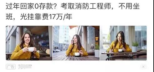 所以,竞价在创意撰写上主要是基于用户搜索词。信息流主要群体为“潜在人群”,用户被动接收信息,所以,更加注重用户需求,以用户需求为中心,向外延伸,进行撰写创意,以此来吸引潜在用户形成点击。 比如下图。并没有直接突出考消防证的好处,而是利用“过年回家0存款”戳中潜在用户的痛点,然后以“不用坐班”、“挂靠费”来激发用户的需求,以此来形成点击。