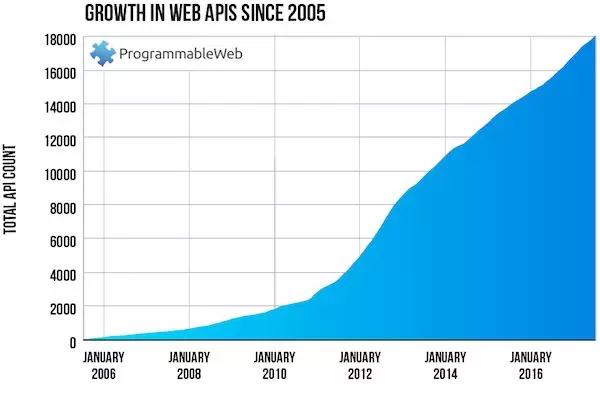 企业在网络营销过程总是存在很多阻碍,除了网络推广这一块,那么还有一些技术层面的。这里就来给大家讲讲2018网络营销所面对阻碍:微服务和API。 微服务和API “公民”技术专家(开发者,集成者,分析师等)的兴起主要得益于软件领域的两大变革: 1. 云计算——大多数的数据和应用程序现在都可以通过全球无处不在的连接随时按需访问。 2. 微服务和API——这些基于云的解决方案已经从封闭的单一应用程序(仅使用人机界面)逐渐发展为更开放的服务,同时也为其他软件应用程序开放了与其交互的API,并将这些功能融合为全新的解决方案。 API的混搭可能性激发了组合式创新(combinatorialinnovation)的激增。合作伙伴和客户现在可以利用这些企业的机器接口来自主进行数字化转型,从而形成“API经济”。 我们可以从2005-2017年的Programmable Web目录中所列出的公共API图表中大致了解到API经济的发展速度 – 当然,它只占可用API总数的很小一部分: