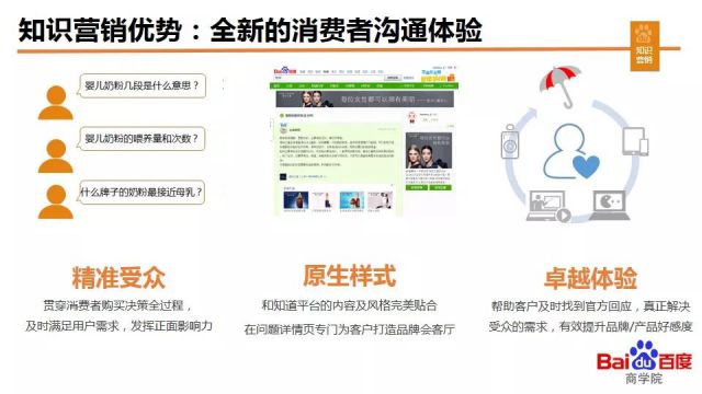 所以知识营销在前端,分析我们用户的需求,精致地去覆盖我们的受众,进而再通过我们的原生样式潜移默化的去影响我们的受众决策,再通过专属页面上产品及品牌的传播,在线功能等,真正解决受众的需求,有效地提升我们的品牌建设。