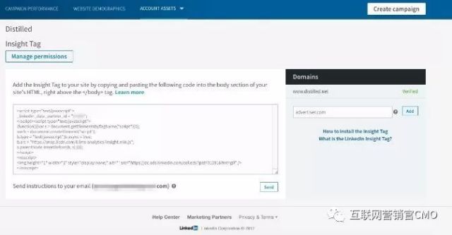 你也许会问Insight标签是什么?LinkedIn的和善专家将其描述为“一种轻量级的JavaScript代码,您可以将其添加到您的网站,以启用深入的广告系列报告,并有关您的网站访问者解锁出有价值的见解。作为LinkedIn营销解决方案的客户,您可以使用LinkedIn洞察标签来追踪转换次数,重定向网站访问者,并解锁有关会员与广告互动的更多见解。“如果您对标签如何影响您的网站有更多疑问,看看这个网页,但简而言之,这几乎是所有的好处和负面的消息,因为标签不太可能以任何显着的方式减慢你网站的速度,但你会提供LinkedIn更多关于您的网站的访问者的信息。 点击Insight Tag按钮后,您将进入以下屏幕:
