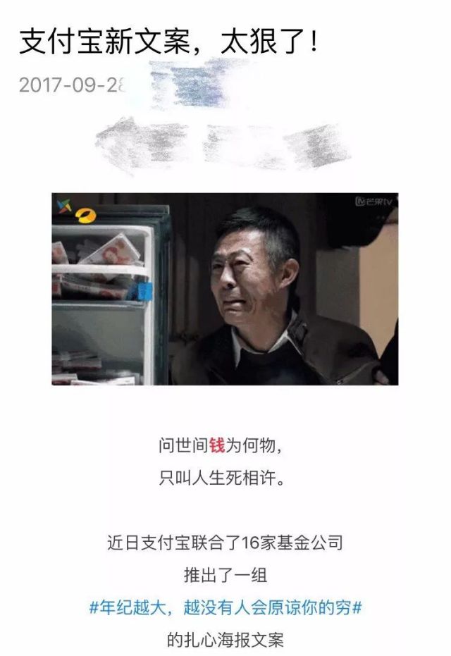 今天大家应该都被“支付宝最新文案,太狠了”刷屏了,这组文案文风犀利,句句戳心,可谓是推广活动软文说到了许多年轻人的心里去了,该文迅速在互联网上传播,可就在大家愉快的传播这组文案的时候,支付宝官方发危机公关中的机会声明了,表示该组文案不是他们写的,故事就这样峰回路转了~~ 以下是支付宝在微信公众号上的原文: