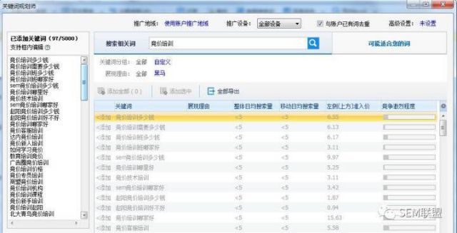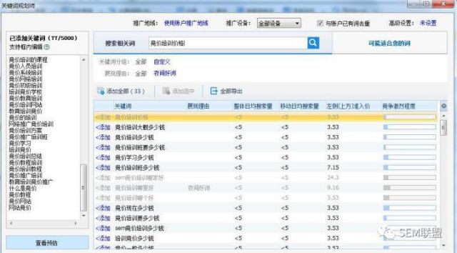 账户如何快速进行关键词危机公关争议分组,接下来我们就和大家一起来看一下,本次使用的账户和关键词都只是实验,不牵涉任何真实账户信息或者数据,如有雷同,纯属巧合。 1、进入关键词规划师,搜索核心业务词,例如竞价培训。