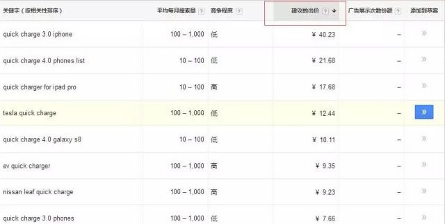 点击copy all,把旅游营销策划所有关键词复制了,然后我们去到adwords检测下这些关键词的搜索量,把关键词都放进adwords后,我们会出现一系列的关键词的搜索量以及建议出价,我们先按照建议出价做降序排列。(出价越高的词商用价值越大),然后我们一个个的去找下他的机会鸿沟。