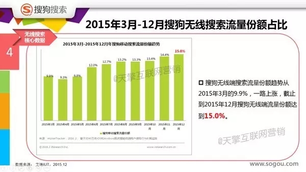 无线搜索月活跃数达到4.6亿,位居全国第二,也就是说搜狗搜索在移动端的用户规模也很大,并且活跃度很高。如果我们把推广放在搜狗搜索上,岂不是随时随地都会有很多很多人在浏览喽?想想都开心啦!