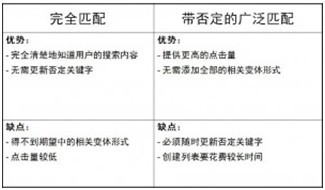 下图是完全匹配与带否定关键词的广泛匹配的对比