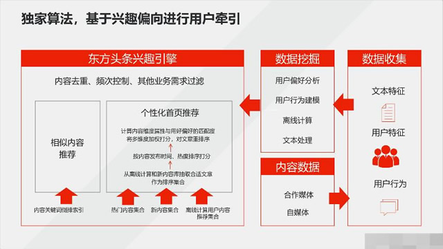 东方头条推广的优势在于独特的技术算法,除了获得海量的源头资讯外,它最核心的技术就是通过大数精准分析用户的地区、性别、年龄、爱好、习惯和当前他(她)最关心的东西。