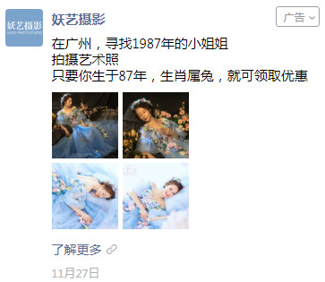 对于摄影行业来说,拥有海量用户和精准定向技术的朋友圈广告,无疑是一个有效的推广渠道舆情图。今天和大家分享的广告案例主角就是原创时尚艺术写真摄影品牌——妖艺摄影,通过朋友圈广告推广获得有效转化。妖艺摄影 对于摄影行业来说,拥有海量用户和精准定向技术的圈,无疑是一个有效的推广渠道。今天和大家分享的广告主角就是原创时尚艺术写真摄影——妖艺摄影,通过朋友圈广告推广获得有效。