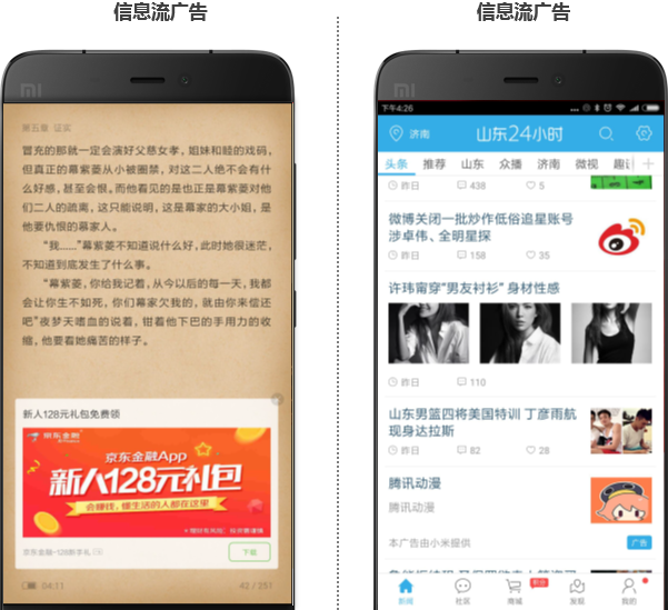 信息流广告位于浏览器和新闻资讯的页信息流当中,在信息流文章中穿插。