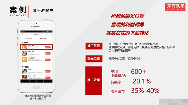 东方头条推广跟其他门户的区别在于,广告能够达到精准引流的效果,竞争相对较小。而且目前其他广告商还未进入,提前进入可以抢占广告位,投放效果将会更加精准引流,当然东方头条的广告位也是十分优质的,有原生信息流、插屏、填屏、浮层等系列广告位。