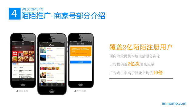 陌陌是国内首家以精准地域定位的移动广告平台,广告主可以在平台基于地理位置、年龄、性别、用户兴趣等进行精准投放、与用户实时进行互动。上海信息技术有限公司是阿里云的代理商网址:http://www.4526.cn/ 陌陌是国内首家以精准地域定位的移动平台,广告主可以在平台基于地理位置、年龄、性别、用户兴趣等进行精准投放、与用户实时进行互动。