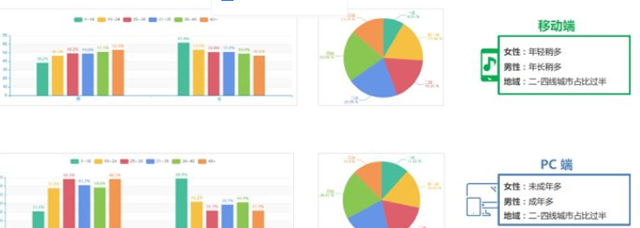 男女比例相对均衡,移动端占比高,达52%,而PC端则男性占比高,达56%