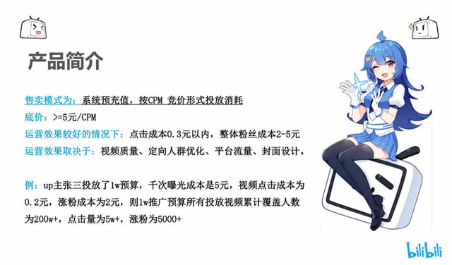 B站结合平台优势,开发了适合B站的信息流广告系统。B站信息流广告会在B站的移动端展现,以图文形式进行展现,广告按点击收费,实行竞价的模式,实际点击价格按照用户的实际出价来计费。B站PC端广告为图文广告。B站广告平台是一个程序化广告购买与投放平台,支持用户自主投放广告、自主管理广告,资费灵活,用户可以根据广告的效果即时进行控制与调整,获得更好的投资回报率。