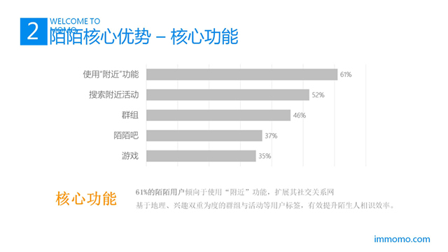陌陌针对的用户男性占比65%,占比35%。