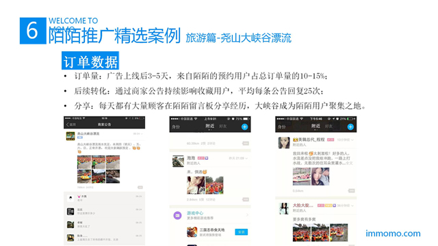 陌陌广告平台上,到店通绝对是一个很新的产品,不仅能够与商家进行交流,还有一个社交的属性,这是一个比较新的尝试,多角度呈现广告与商家的展示两个位。广告主的广告提升更多的效果。