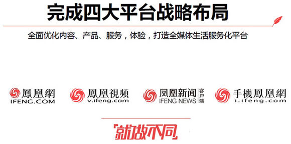 凤凰新媒体资产将全面打通,凤凰网,手机凤凰网,新闻客户端,视频客户端,一点资讯,使用这些平台的网民占全国网民的95%。