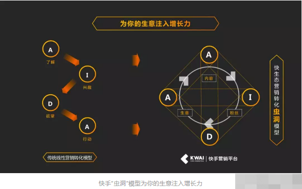 快手用户不以精心的表演和精美制胜,更强调真实、真诚,从而降低内容创作门槛,留存率更高。快手用户对已关注的创作者保持持续关注,平均每周对单个关注KOL至少点赞,评论1次以上。基于这一强社交关系链,快手围绕AI+DA(人工智能+数据分析)打造的“虫洞”模型,让AI在快手强大视频理解能力的基础上,深度参与到商业化的精准投放、素材制作和智能运营工作中。在此过程中,品牌方与用户之间的距离被大大缩短,消费者的决策成本也被显著降低。用户对于品牌的体验不再是线性的、一次性的,而是多点触发的、高频且高效的。