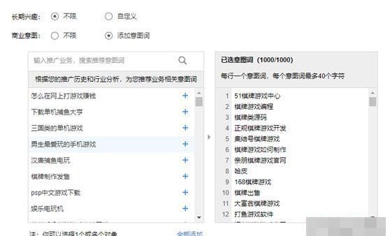 百度信息流相较的信息流广告有一个非常大的优点就是定向。这使得百度信息流广告对目标用户的定位更加精准。而棋牌游戏行业的关键词是非常众多的,这需要推广人员尽力去挖掘。