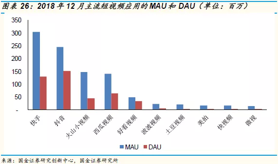 然而,“抖音浪潮”的效果被严重高估了。我们的监测数据显示:2018年12月,抖音的MAU为2.44亿,低于快手,在所有移动应用中排名第23;抖音的DAU为1.51亿,高于快手,但是在所有移动应用中仍然只排第13。这个用户基数虽然让人印象深刻,却还远远谈不上“刚性需求”甚至“冲击腾讯流量基础”。当然,抖音的DAU与MAU比例达到了0.62,高于所有其他短视频应用,也高于除了微信之外的绝大部分非工具类移动应用。从这个角度看,抖音的用户黏性确实不低。