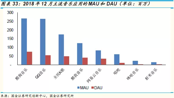 2018年,我们观察到一个有趣的现象:QQ音乐、全民K歌的MAU继续快速上升,尤其是QQ音乐的上升趋势与抖音如出一辙。与此同时,腾讯音乐旗下的另两款应用(酷狗、酷我)的MAU却没有什么增长。为什么?我们认为,抖音确实对移动音乐行业构成了正面刺激,就像它对直播行业的刺激一样;抖音对腾讯的内容生态体系利大于弊。此话怎讲?