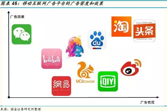 任何互联网广告平台的长期命运,都是由基本供需关系决定的。第一个重要因素是广告密度,或广告位的负载数量。今日头条、微博的广告负载都已经很高,淘宝(包括天猫)、视频网站、百度也不低;在这方面最克制的是微信,不但广告密度很低,而且有很多广告位尚未开辟出来。第二个重要因素是广告效果,即按照CPC、、CPA、CPS等任何指标衡量的投入/产出比;即使是根据CPM或时间定价的广告平台,也可以测算出隐含ROI。我们认为,圈、阿里妈妈、今日头条和百度的广告效果比较好,微博、视频网站、门户网站的效果比较差。所以,我们可以合理地推断:微信广告平台的长期潜力非常大;今日头条、淘宝、百度仍有一定的成长空间;微博、视频网站的广告业务则面临着瓶颈。