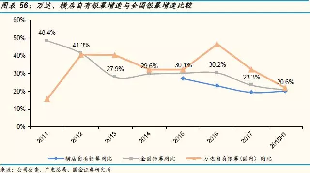 横店影视的ROE是所有上市院线公司中最高的,主要是由于定位和运营都做到了接地气。新建影院都会带来比较大的资本开支,横店的整体定位为中档,装修和设备采购成本不高,再加上精细化的运营,使得其影院的平均回报周期在行业内处于领先水平。根据我们的测算,2017年单影院的平均投资额,金逸影视为3305万元,万达为1915万元,横店仅为839万元。横店也做到了相与行业平均水平接近的银幕增速,尤其是2018年上半年出现了加速扩张的趋势。投入少、回报快、接地气,使得横店在区域分化显著的国内环境下,走出了一条独特的运营路线。