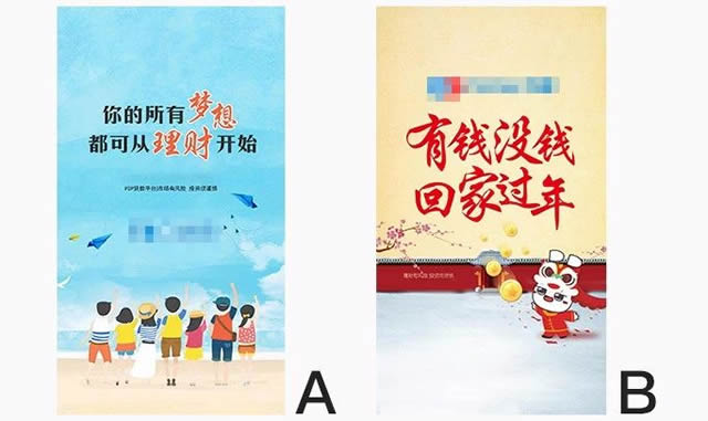 测试1:都是P2P借贷类平台产品,请问以下两张闪屏广告图哪一张的更高呢?