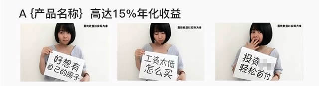 测试2:都是理财类产品,请问以下两张信息流三小图广告哪一张的点击率更高呢?