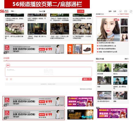 种类:播放框右上方半通栏、缩放播放框下方通栏、56频道播放页第二/底部通栏左、56频道播放页第二/底部通栏右播放页第一通栏左。
