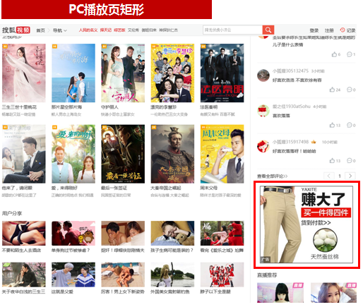 种类:页顶部右侧、PC播放页通栏右、PC播放页矩形1(包版)、搜狐网、频道页矩形位置、播放页右侧Tab