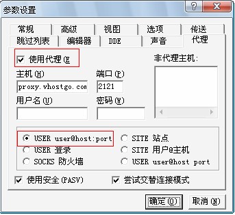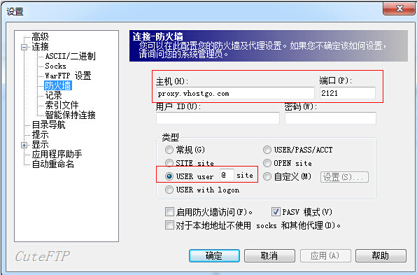试试),端口填写:2121,用户名和密码留空,下边选择“USER host:port”,在使用安全(pasv)前面打上勾, 然后点击确定即可。
