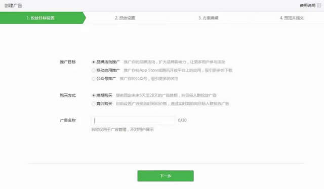 用户可以根据不同的推广目的选择不同的广告形态。除原先我们已经看过的“品牌展示”类广告,此次朋友圈广告还新增了“公众号推广”、“移动应用推广”等全新广告形态。