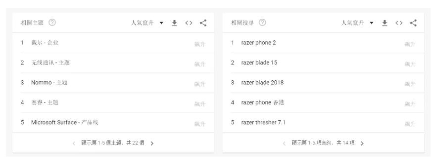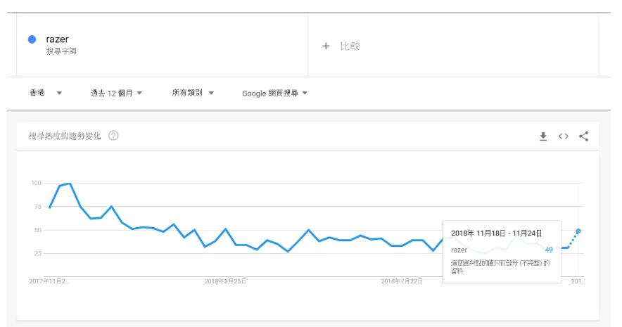 本地香港人搜索中文、英文以及两者的混合,所以知道哪种用法最流行是非常重要的。继续以“razer”为例,我们可以看到11月的搜索越来越受欢迎。与此同时,使用拉泽的中文术语,我们看到受欢迎程度稳步下降。 Google趋势使用技巧4 请在谷歌趋势中输入中文、英文和混合版本,然后选择要在香港定位的关键词。通过这样做,您可以找到最常见的用法。 将谷歌趋势作为关键词研究过程的一部分,无疑会提高最终关键词的质量。虽然它不是一个收集大量关键字数据的地方,但它可以帮助您验证关键字的搜索趋势,并提供有关相关查询的最新相关信息。 本文介绍了使用谷歌趋势研究香港市场本地化关键词的4个技巧的内容,希望对您有所帮助。以上分析只是冰山一角,仅供参考!