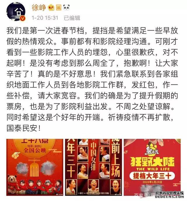 2020年正值农历新年之际,却时逢疫情,多部电影春节档被迫撤档。字节跳动反向操作购买了《囧妈》电影版权,运用,巧妙开创了新内容合作时代。 ![]() 一位在影院工作的朋友,在徐峥微博下面留言,质问徐峥知不知道电影提前一天上映,会给影院工作者带来多大的麻烦? 面对网络上的众多质疑、猜测,徐峥第一时间出来做了回应。看完徐峥这一整段话,不得不感叹,这个男人的情商是真的高,公关能力也是超级强,让人不佩服都不行! ![]() 从徐峥的一整段回应,短短几行字,真的让人深刻地感受了一把他的双商。既借着这件事再次宣传了电影,又安抚了影院工作者和观众的心,这是第一处完美的公关点。 随后在24日大年三十,电影《囧妈》宣布将于大年初一上线免费播出!这便是《囧妈》危机公关的第二个精髓之处。 本以为对于电影资本止损逻辑来看,现在要么转线上折价收费、要么后延电影上映日期是可选择的有限的保守策略,但是徐峥与董平、宁浩、项绍琨创办的欢喜传媒与字节跳动闯出了一条新路。在旗下抖音、今日头条、西瓜视频、抖音火山版等在线平台免费播放《囧妈》。因为这一举动,一日之间,欢喜传媒股价大涨43%。 从电影方来说,此举在疫情如此严峻的春节期间一举占领微博话题榜“沸”,截止目前话题#囧妈初一上线免费播出#获得7.2亿浏览,.8万次讨论!对于现如今这个流量为王的时代,这样量级意味着为影片省下多少推广费用。 仔细查看徐峥在发布马航 危机公关的声明中,他只字未提自己,也未提欢喜传媒。而是感谢了主创、工作人员以及最重要的,在前线抗争疫情的医护人员。这就是典型的没有小我、心怀大我的大局观。院线电影撤档线上免费上映,是需要多大的魄力和决心才能做的决策。这也显示出字节跳动和欢喜传媒领导层的决策力,是十分值得被尊敬的。 肺炎事态升级后,这时候对于情绪敏感的大众,如何说正确的话、做正确的事,是尤为谨慎且关键的。无疑这次徐峥亦或是欢喜传媒运用危机公关的方式是堪称典范的。