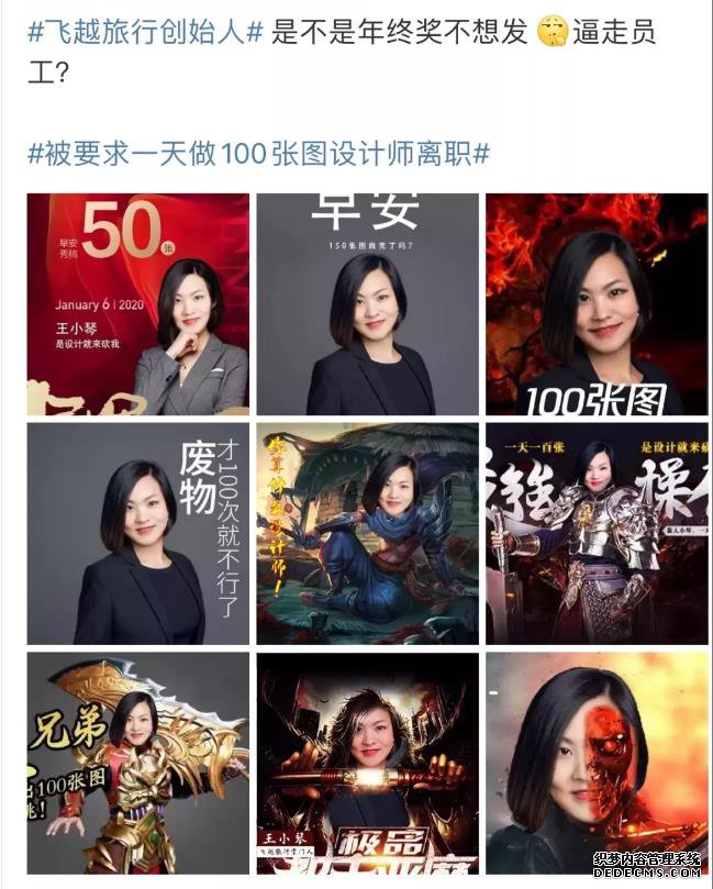 1月6日,有网友爆料了一段飞越旅行创始人王小琴与员工在微信群聊里的对话。随后一天100张设计图顿时爆红于网络。 在员工提出疑义后,王小琴回复称,“一张都没做就开始说做不完,提高自己的效率。这是公司正常的工作安排。”对于这种极不合理的工作安排,网友戏称年末将近,该公司创始人为节约年终奖以这种方式逼迫员工辞职,还有网友给王小琴的照片“激营销品牌与推广情P图”。 ![]() 舆论发酵后,1月7日,飞越旅行董事长贾飞对此事做出了回应。贾飞称这种安排很正常,员工做出来的图不满意,那就做出100张图来挑选。不去做、不做尝试就拿不出满意的作品。贾飞还表示,这样的安排只是为了给客户服务最好,最极致。客户应该看到公司对员工严格的要求,而不是站在员工的角度表示同情。 这样毫无人文关怀的公关回应,没有得到网友的支持,反而更激起了网友的愤怒。 正如贾飞所说,这次网友站在了员工的角度,对这样高强度的工作安排表示同情。网友们积极地以反讽、恶搞、谣言等各种修辞方式感同身受地参与到此次公共事件中,不断扩大舆论的范围,试图倒逼企业为此事做出回应。 点评: 在经过了华为、网易暴力裁员后,公众对企业与员工关系的话题极度敏感。由于员工与企业高管之间不对等的话语关系,让这些处于相对弱势的群体在网络上形成了一个虚拟的组织,这个虚拟的组织赋予了他们自我表达的机会。网友们通过关系集聚引发话语权的再分配,为自己的想要争取的权益发声。 根据贾飞的回应可以推断,在飞越旅行的企业价值排序中,对客户的服务远比对员工工作的合理程度重要,因此可以举着“客户即上帝”的大旗无限制、不合理地压榨员工,其本质则是对客户的“人化”和对员工的“工具化”。同样是人,员工却因飞越公司的价值观被强行缺失了价值,这种价值不对等的关系也是公众对飞越旅行董事长回应抵触的原因。 其次,“违反常识”的颐气指使也是公众情绪激发点,公众在这位设计师身上看到了自己的影子,即“外行指点内行”的羞辱感。这种羞辱感带来的群情激奋也是董事长在二次回应时应当正面回应的事实性问题,如果非专业人士对专业问题进行指点并拥有决定权是公司内业务的常态或是如此的“默认”,这无疑是断送今后企业的招聘道路。 在网络公共事件的讨论中,充满了各主体之间的权利和利益的争夺。随着网络技术的不断发展,公众的发声权力越来越大。在这种情况下,企业如果不能很好地认知自己的社会位置,一直以“对抗&微商引流的软件rdquo;的思路对待公众的发声,将永远得不到公众的支持。